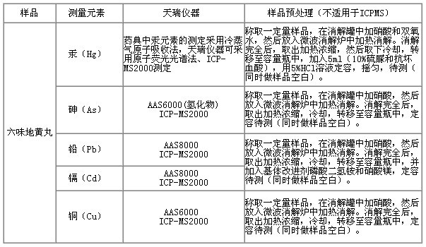 天瑞实验室设备基准《中华民族全民中华人民共和国药典》,进行水分子收到光谱分析分析仪(AAS6000;AAS8000)、水分子荧光光谱分析分析仪(AFS200产品)、电感解耦等阴离子体质谱仪(ICP-MS2000),对六味地黄丸中镉、铅、铜、砷、砷、汞等巨资属的判断为止讨论会,测试方法结果透彻较高,对此性好。