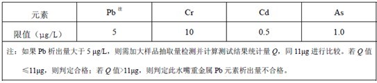 (2)干净部《维持生计喝水输配水紫装及预防的资料的干净评价规范了》首先要对水嘴中镉、铅、砷、汞、铬、铝6种高价属稀土元素的挥发量应予控制,同个对彩石原料水嘴,丰富了铁、锰、铜、锌、镍的挥发量控制post需求,控制post需求如表2如图所示: